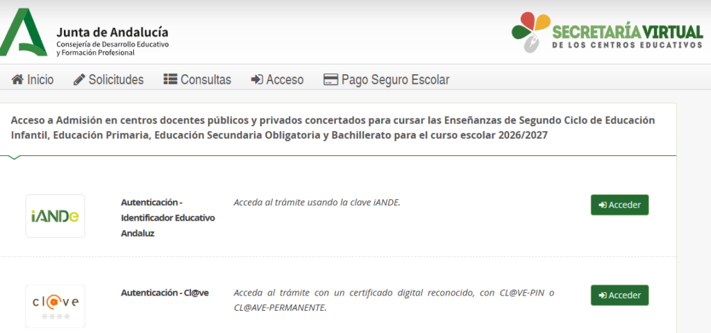 Pueden realizar la admisión a través de la Secretaría Virtual: https://secretariavirtual.juntadeandalucia.es/secretariavirtual/accesoTramite/543/